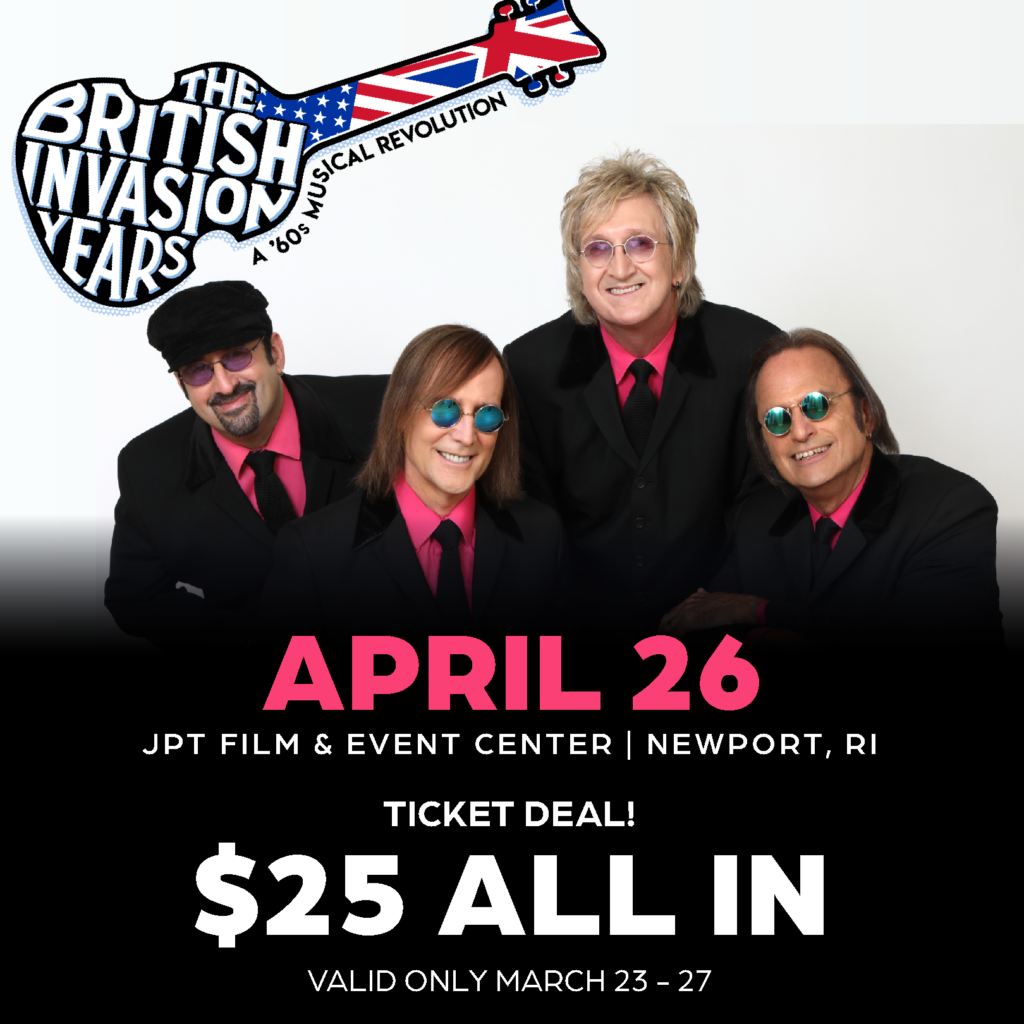 The ’60s music scene comes alive once more with “The British Invasion Years,” a captivating retrospective celebrating smash hits from British chart toppers like The Beatles, The Rolling Stones, The Kinks, The Who, The Moody Blues and The Zombies, just to name a few, as well as great American hit makers such as The Monkees, The Turtles, Steppenwolf, The Beach Boys, Frankie Valli & The Four Seasons, The Mamas and The Papas and more. This high-energy performance showcases the biggest hit songs, all culminating in a remarkable finale featuring Beatles classics, as if performed live by the Fab Four today.