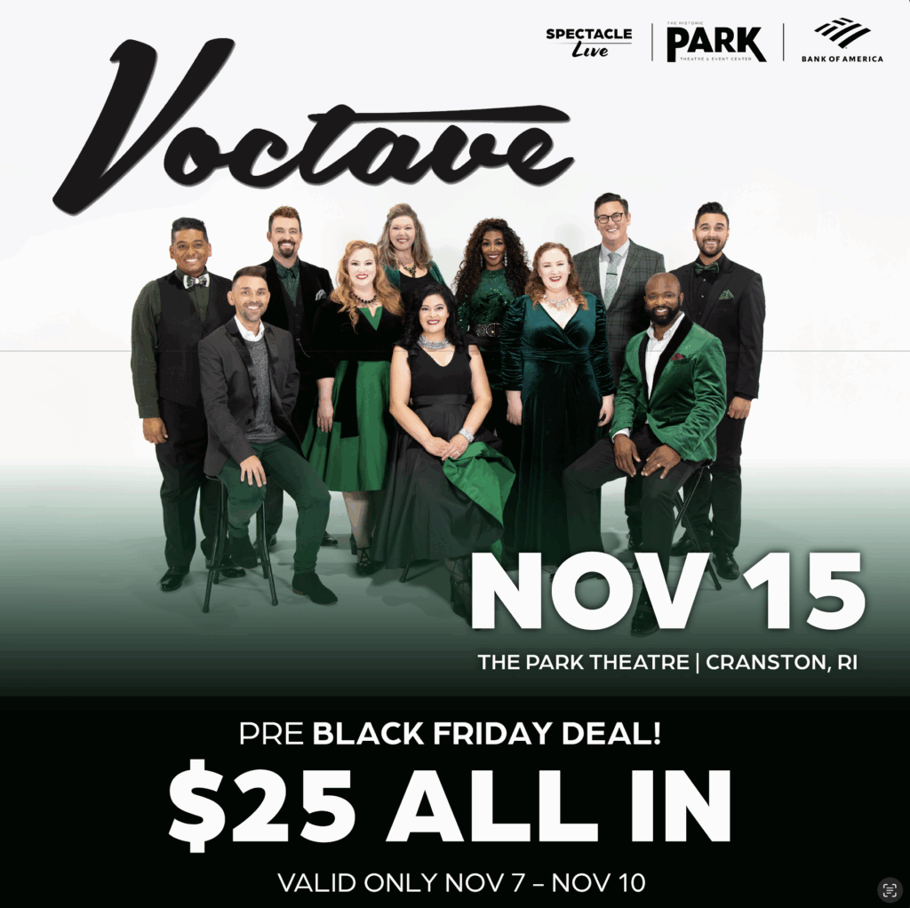 A cappella sensation Voctave has had over 160 million social media views of their videos, and their albums frequently debut in the top 10 on the Billboard and iTunes charts. In 2024 they released the third volume in their popular The Corner of Broadway & Main Street series and recorded a number of collaborations with guest artists including Tituss Burgess and The Swingles. Last season Voctave released a brand-new holiday album It Feels Like Christmas and embarked on a North American holiday tour. Other recent highlights include an album of lullabies entitled Goodnight, My Someone and tours of their popular show The Corner of Broadway & Main Street. Formed in 2015 by producer and arranger Jamey Ray, the voices that bring their arrangements to life represent a wealth of diverse backgrounds and musical experiences. Hailing from Central Florida, the eleven members of Voctave have performed across the globe and appear on countless recordings. The group has performed with GRAMMY, Dove and American Music Award recipients including Sandi Patty, Pentatonix’s Kirstin Maldonado, Mark Lowry, David Phelps, and Jody McBrayer. Voctave’s albums are digitally available on all platforms.